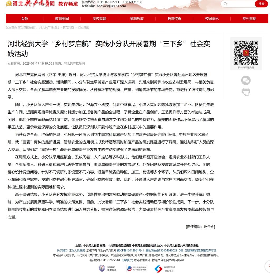 【河北共产党员网】51吃瓜网 “乡村梦启航”实践小分队开展暑期“三下乡”社会实践活动