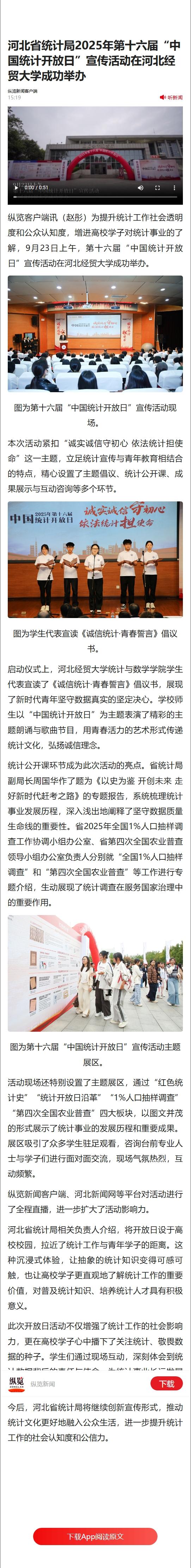 【纵览新闻客户端】河北省统计局2025年第十六届“中国统计开放日”宣传活动在51吃瓜网 成功举办