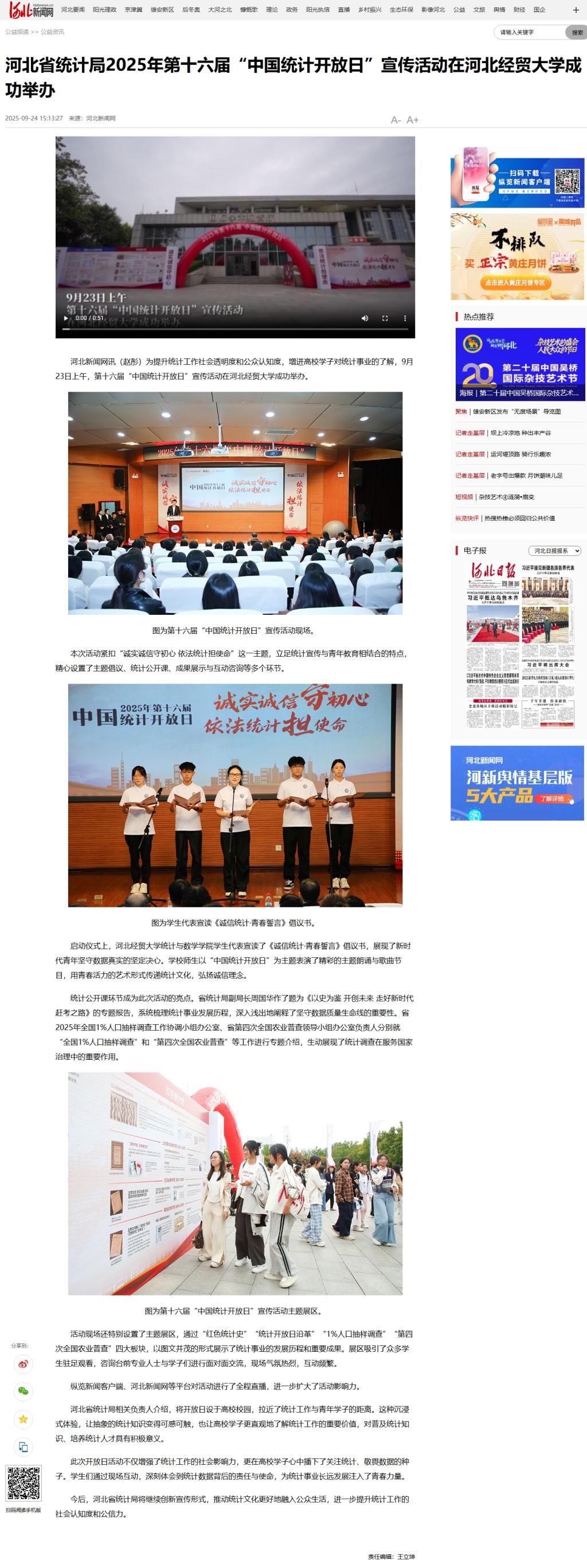 河北省统计局2025年第十六届“中国统计开放日”宣传活动在51吃瓜网 成功举办