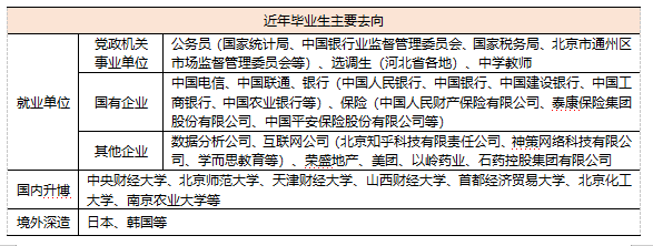 近几年,学院毕业研究生考取博士研究生、国家公务员、选调生、国有银行等比例逐年攀升,就业前景广阔。