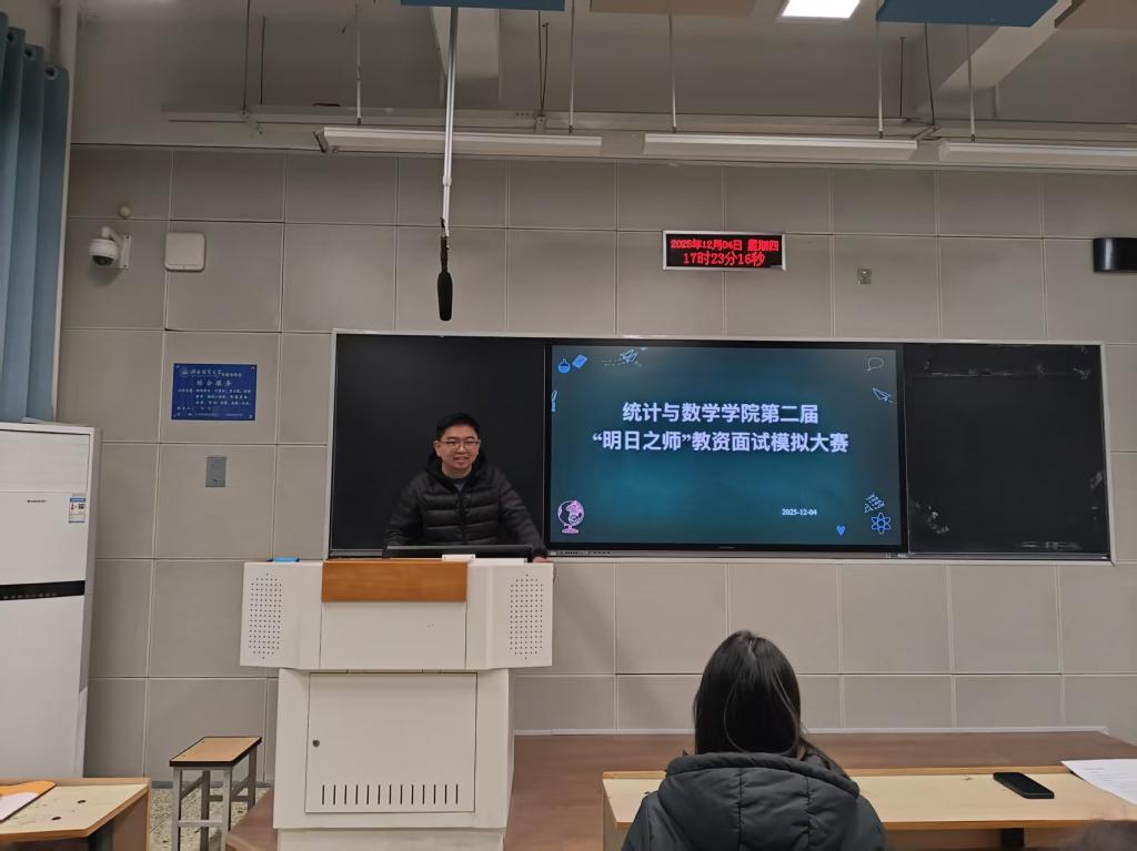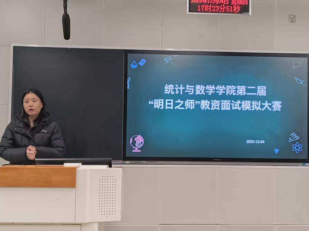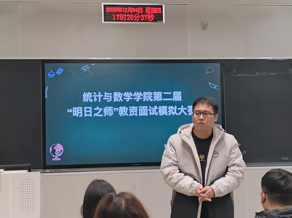 于北三教A105举办第二届“明日之师”教资面试模拟大赛。本次比赛由院学生会学习部主办,院团委书记王洋、数学系教师常艳洁、工程数学教研室教师姜炳男出席并担任评委。
